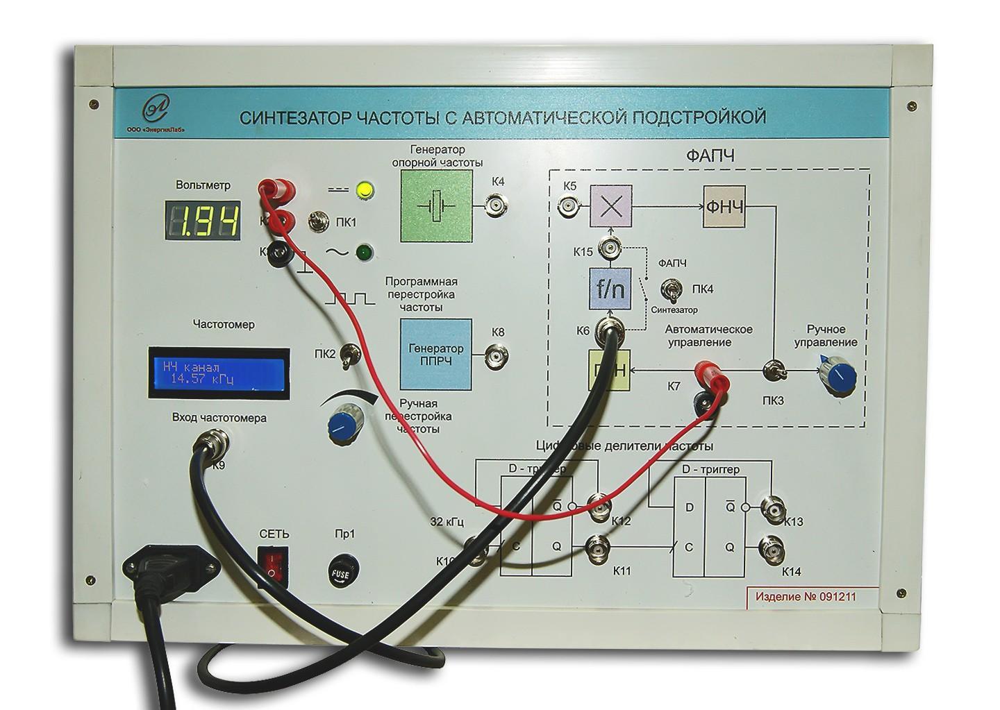 2. Предназначен для изучения принципов работы синтезатора частоты реализующий косвенный когерентный принцип синтеза сетки частот и позволяет выполнять лабораторные работы.