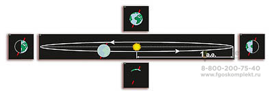 Комплектность: карточка с изображением орбиты Земли – 1 шт., карточка с изображениями осей вращения планет – 1 шт., карточки с изображениями Земли в разных точках орбиты – 4 шт., карточка с изображениями наклона орбит планет к плоскости земной орбиты – 1 шт., руководство по эксплуатации с методическими рекомендациями – 1 шт.